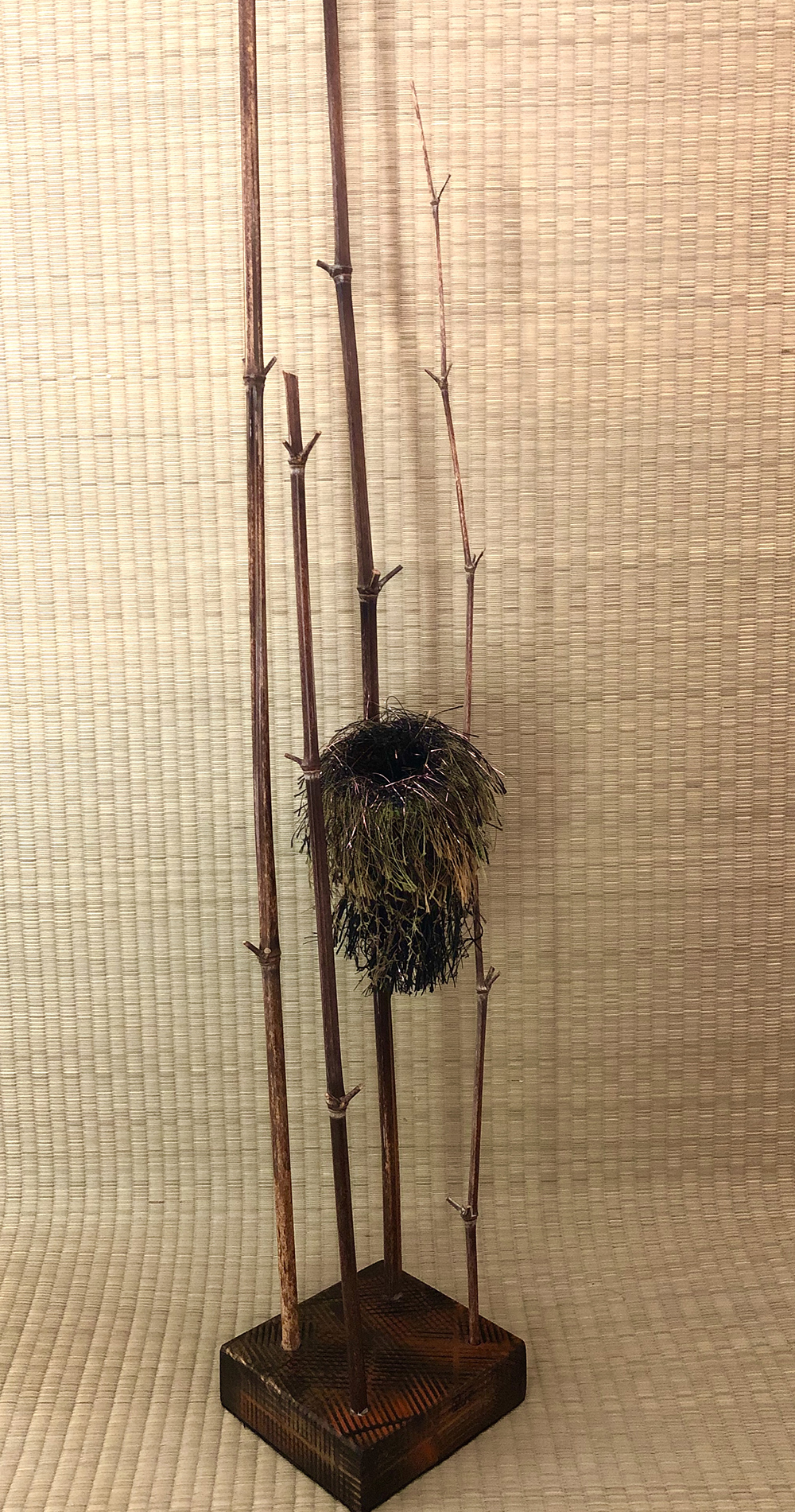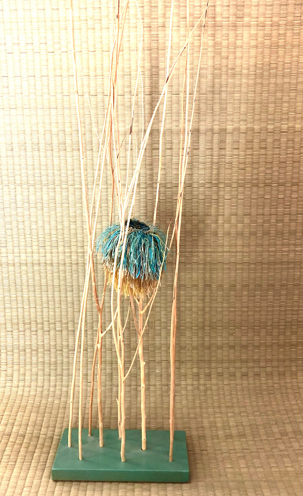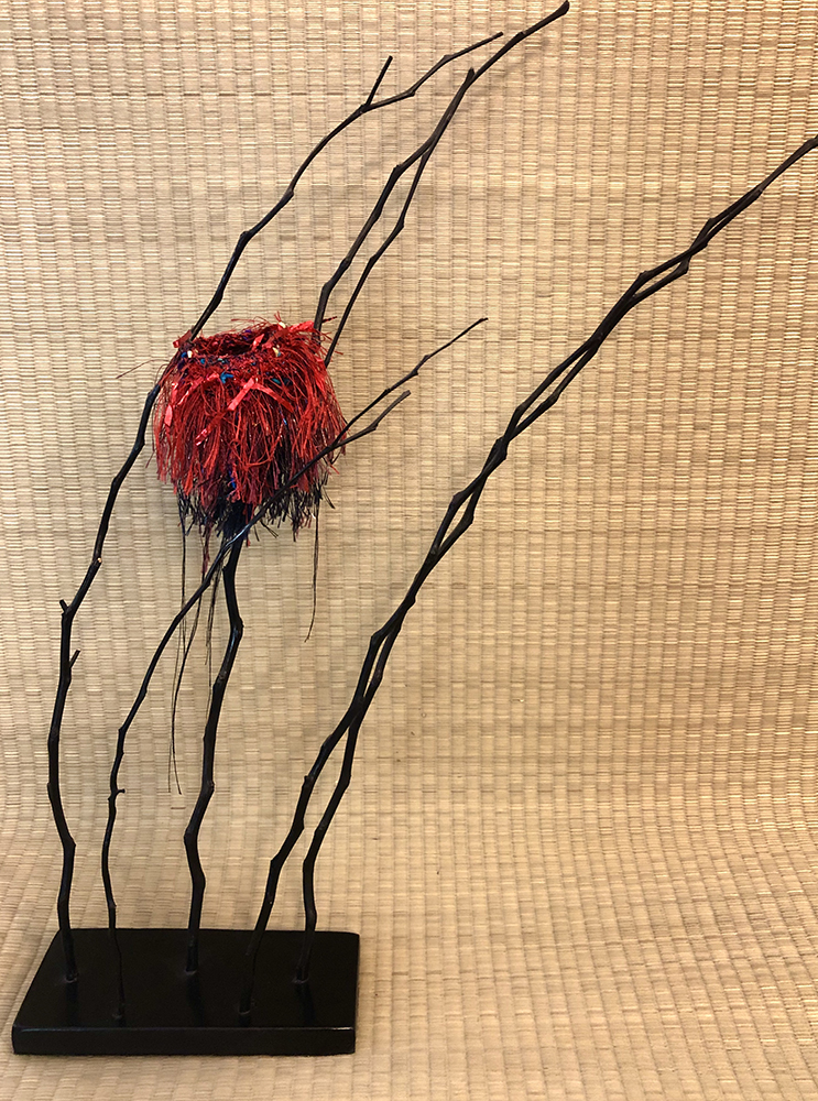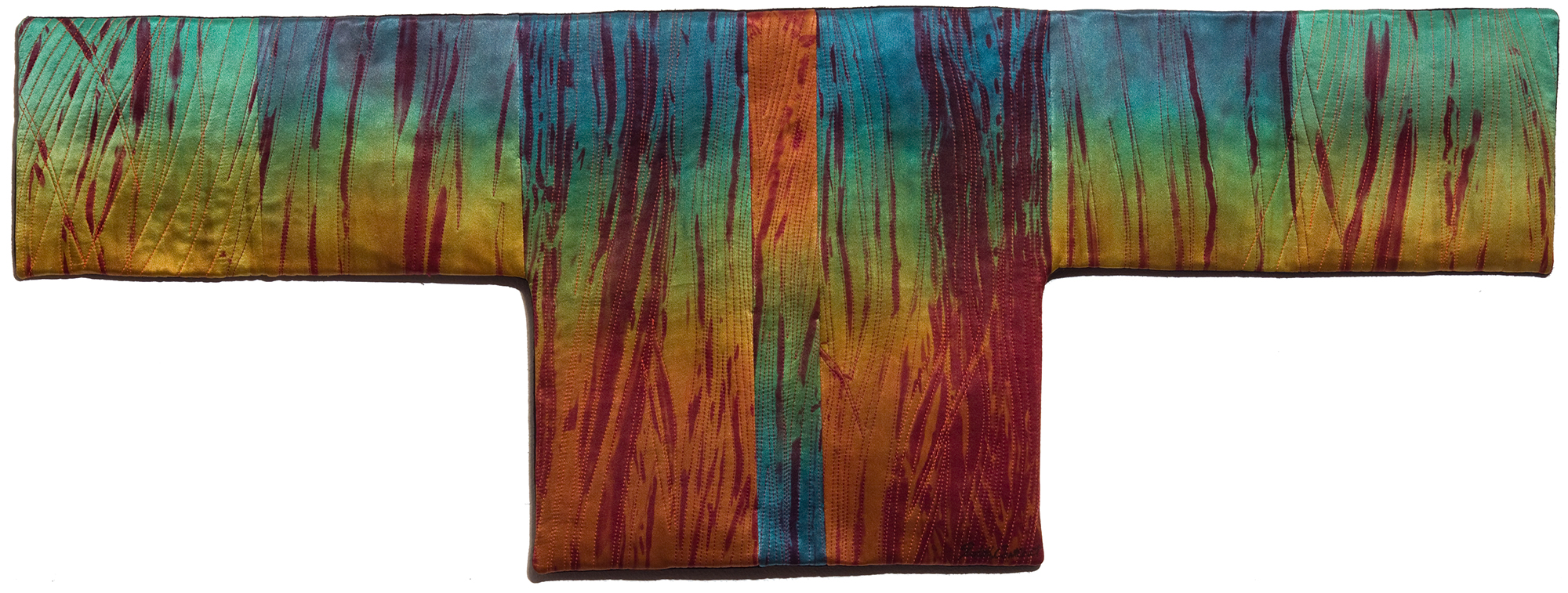In this exhibition, Judith also converses with another iconic element of Japanese culture, the kimono. Judith enjoys working with the “the harmony and balance inherent to the kimono form” in both smaller and larger scale works. In Bittersweet, she adds “visual tension” to the kimono form by introducing “dynamic and harmonious” elements of color, pattern, and texture.