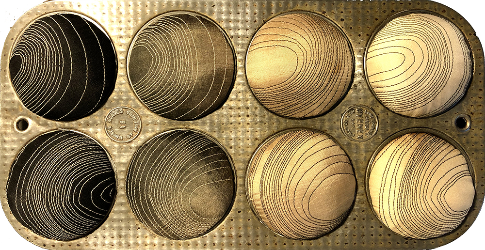 Judith Content’s current work explores a contemporary interpretation of the traditional Japanese dye technique called arashi-shibori, also known as “pole-wrapping shibori.” In Japanese, the word arashi means storm. The term was applied to this type of resist-dyeing because the end result suggests the patterns of a driving rain.